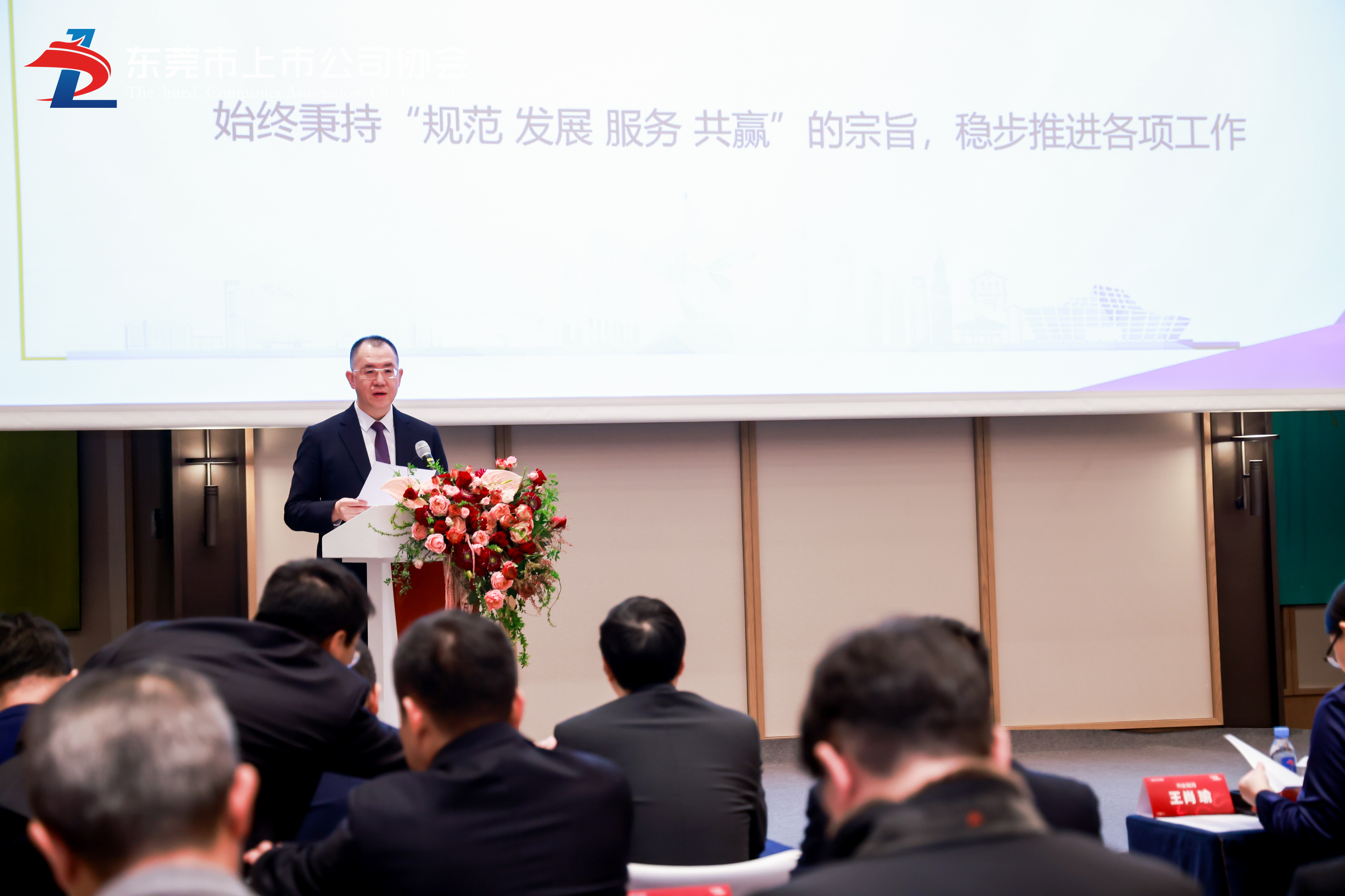 1月26日下午,东莞市上市公司协会顺利举行了第四次全体会员大会暨第一届理事会第六次会议。市金融工作局副局长王肖瑜,协会会长林海川、监事长王崇恩,副会长何思模、林旺南,理事洪少俊、邓玉泉,监事宋朝阳、张志平,秘书长李军印及各上市公司会员单位、联系会员单位、预备会员单位等79家单位代表出席了大会。
