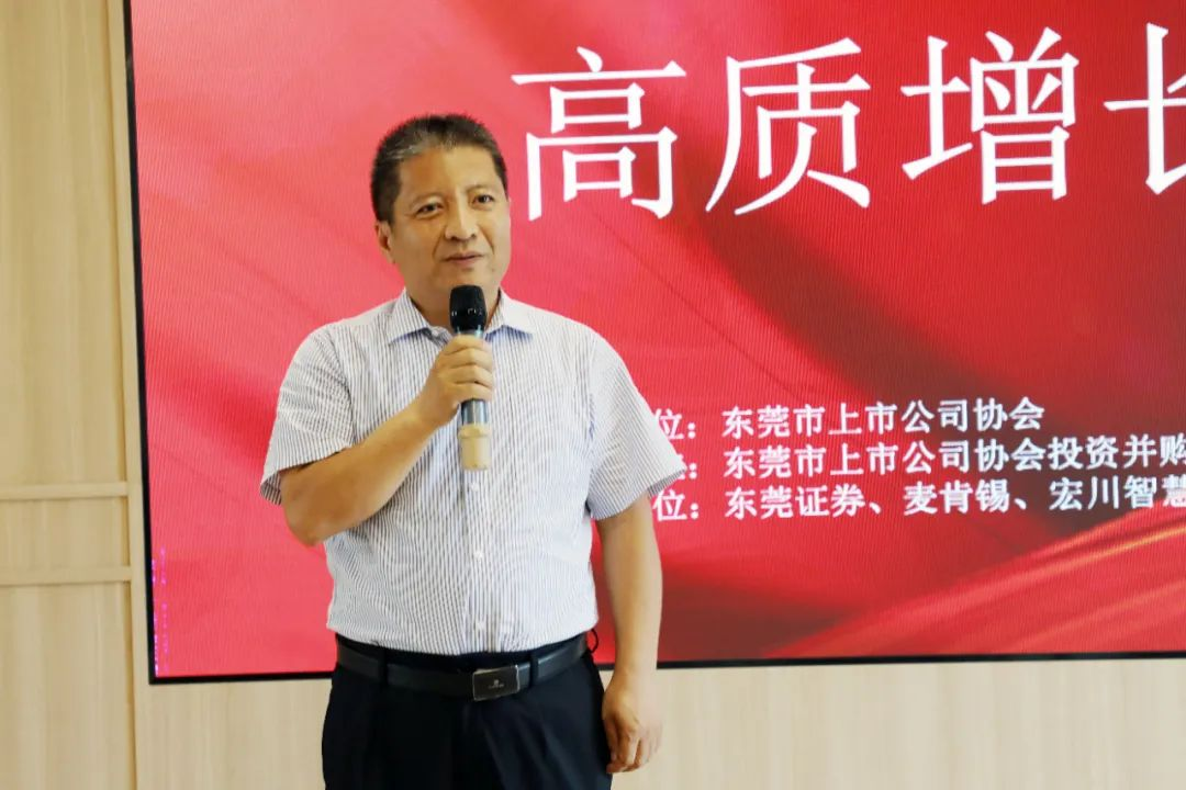 7月11日,东莞市上市公司协会紧紧抓住新“国九条”出台契机,以“投资并购新周期 高质增长促发展”为主题,成功举办东莞资本市场三十周年系列活动——投资并购交流会。活动吸引了20余家上市公司、20余家拟上市公司以及10余家国内外投资机构共计90余人参会,东莞市上市公司协会秘书长李军印、副秘书长唐芙云,东莞证券投行业务总监、投资银行部总经理郭天顺,协会投资并购委员会主委朱则亮、副主委张孝鹏参加活动。
