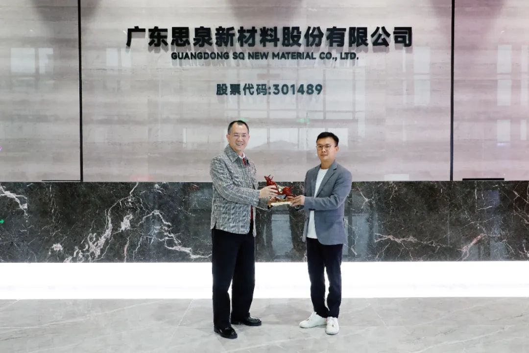 3月6日,东莞市上市公司协会会长林海川带队走访会员单位广东思泉新材料股份有限公司(简称:思泉新材,股票代码:301489),了解企业问题、诉求,听取企业对协会建设的宝贵意见,受到思泉新材董事长任泽明、董秘郭智超的热情接待。