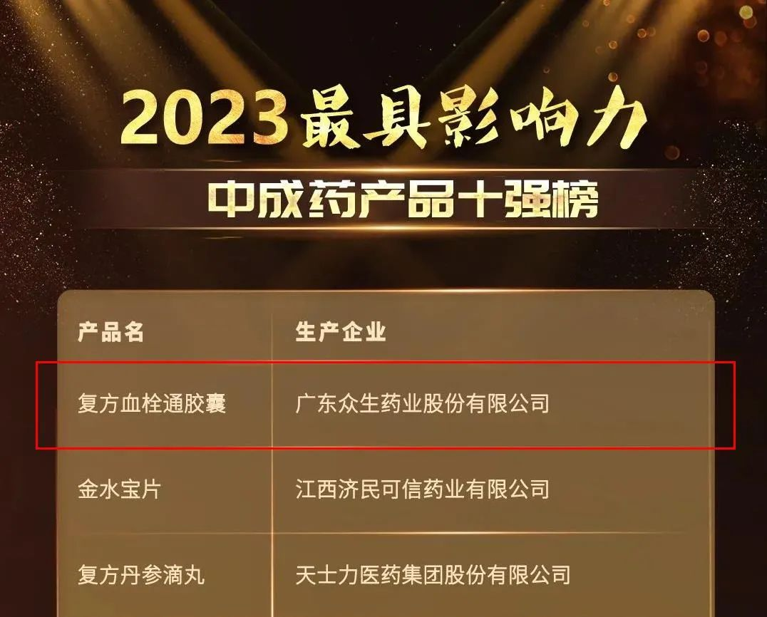 此外,本次荣评“2023最具影响力中成药产品十强”的复方血栓通胶囊,则是公司坚持“中药为基、创新引领,聚焦特色的医药健康企业”战略的成果典范。众生药业是复方血栓通系列制剂的产品原创者、标准制定者、行业引领者和市场主导者。复方血栓通胶囊是多部临床指南、共识推荐的用于治疗视网膜静脉阻塞、糖尿病视网膜病变、老年黄斑变性、中心性浆液性脉络膜视网膜病变等多种眼底血管疾病的基础用药,上市二十多年,造福众多眼底病患者,同时在心脑血管领域也有广泛的应用。