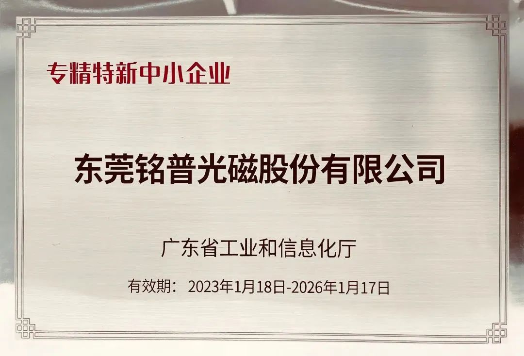 其中,东莞铭普光磁股份有限公司凭借出色的企业实力,在专业化、精细化、特色化、新颖化方面成绩突出,喜获“广东省2022年专精特新中小企业”荣誉称号。